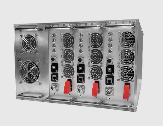 The new XWJ2X modular jamming module is made out of two cut outs of one aluminum piece by a CNC-machine. This ensures highest HF-denseness. In addition passive heat sink and/ or active cooling depending on jamming operations are already included. For jamming operations, longer then 5 – 10 minutes additional active heat sink through fans are integrated.