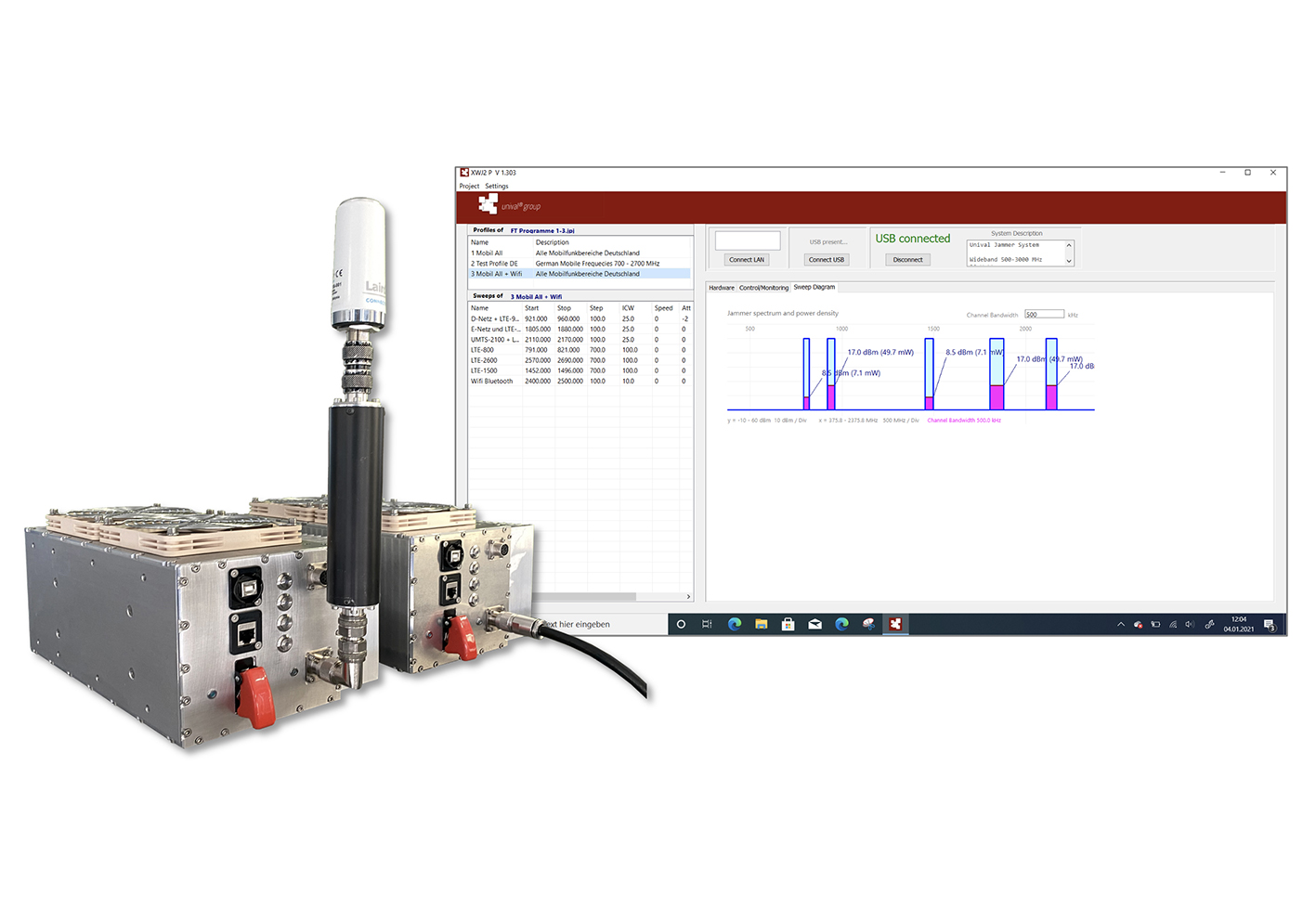unival group provides programmable jamming systems designed for different threat scenarios and operational environments. The portfolio includes wideband and indoor spectrum jamming solutions that enable controlled signal denial within integrated security concepts.