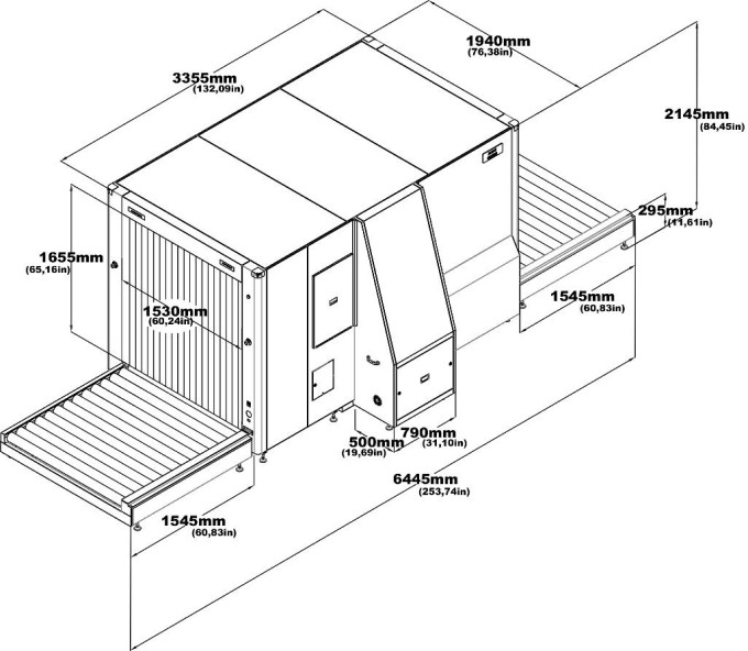 It is designed with the latest technology to scan medium and large packages on a pallet. This x-ray machine is one of the most suitable solutions for use in high security facilities such as freight companies, terminals, airports, customs and general cargo.
