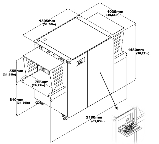 - Installation Type: Floor mounted conveyor based x-ray inspection system.