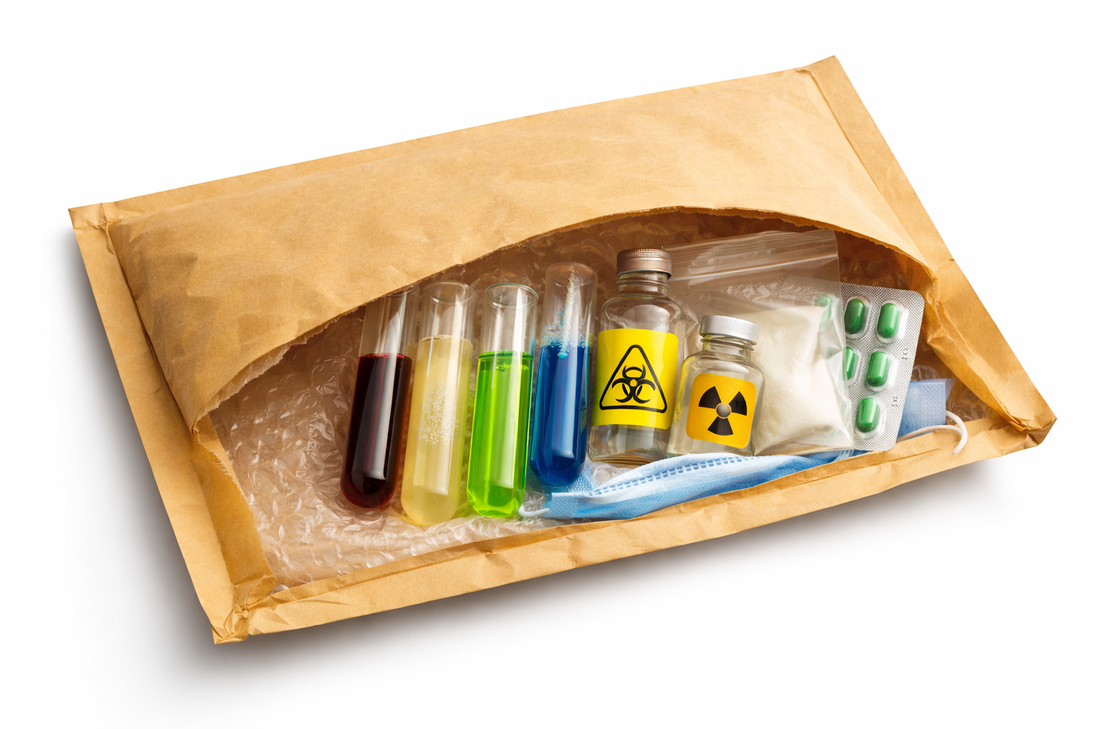 - Toxic powders, liquids, or chemical agents concealed in mail,