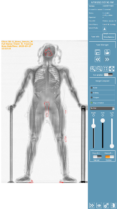 uniXSCAN XPS VISIO is the intelligent detection software integrated within the uniXSCAN XPS Low Dose X-Ray Personnel Scanner. Acting as a digital assistant for security operators, VISIO automatically analyzes transmission X-ray body images and highlights anomalies that deviate from a contraband free human profile.