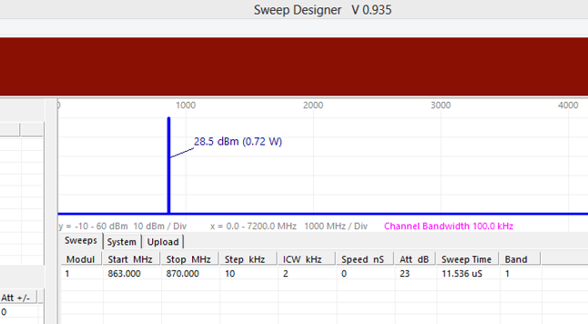 Furthermore the software will directly display the effect of programming in the jamming graphics. Calculated jamming signal strength, sweeping speed, automatic distribution of the jamming signals and output power will be shown in the graph(s).