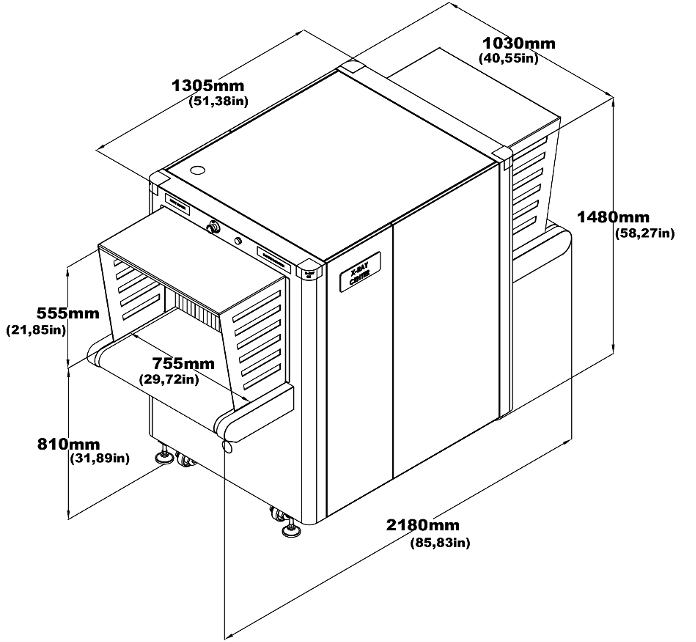 - 755 mm x 555 mm Tunnel Opening: Supports inspection of larger baggage items.