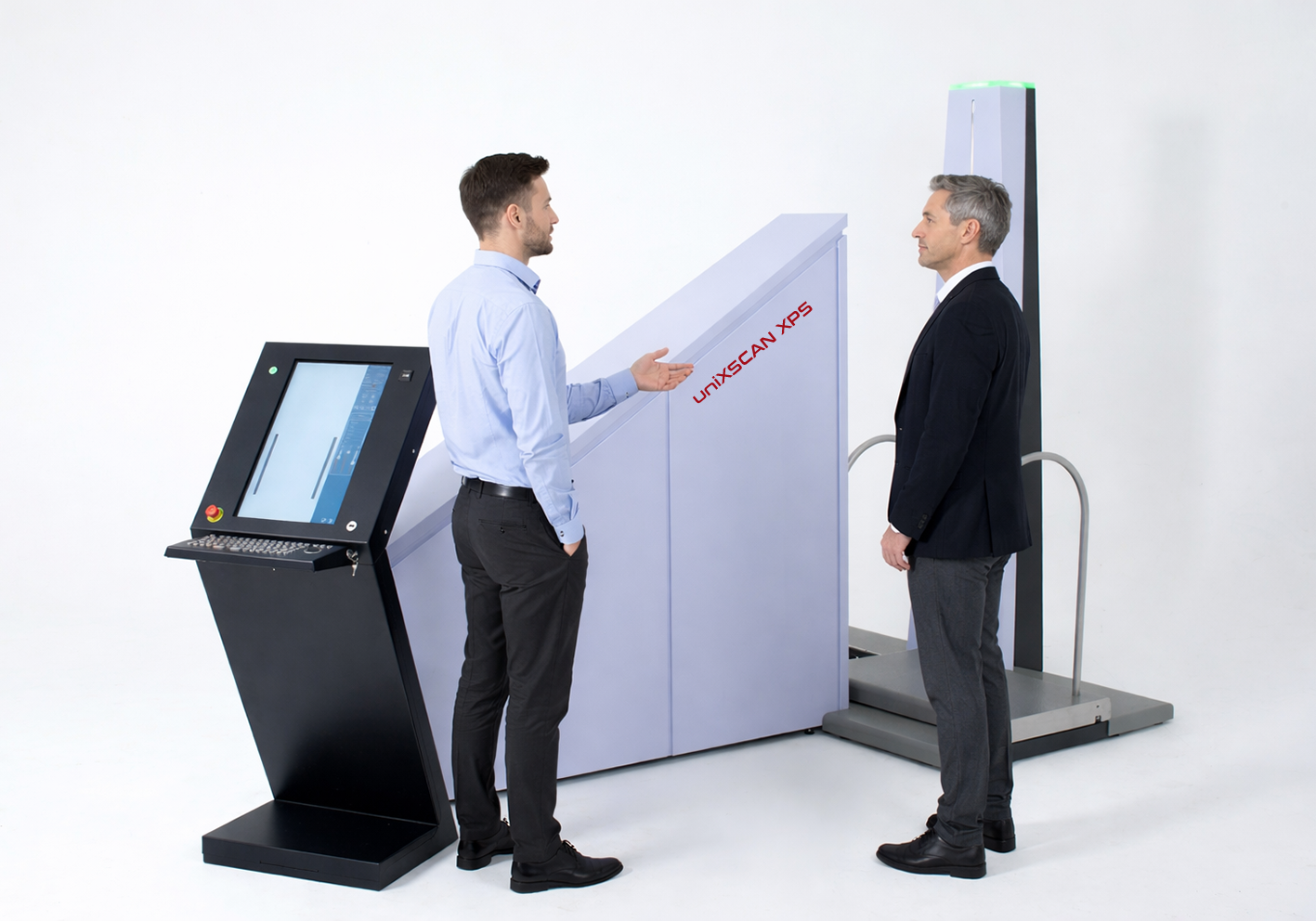 The uniXSCAN XPS is a low-dose transmission X-Ray Personnel Scanner designed for detection of concealed threats carried on or within the human body. Operating as a walk through single view transmission scanning system, it enables rapid inspection of individuals without physical contact while maintaining controlled radiation exposure levels.